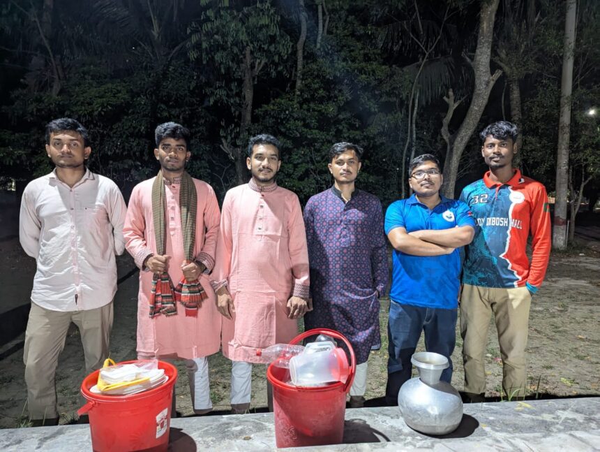 আনসার সদস্যদের সাথে সেহেরি করলেন গোবিপ্রবি ছাত্রদল নেতারা