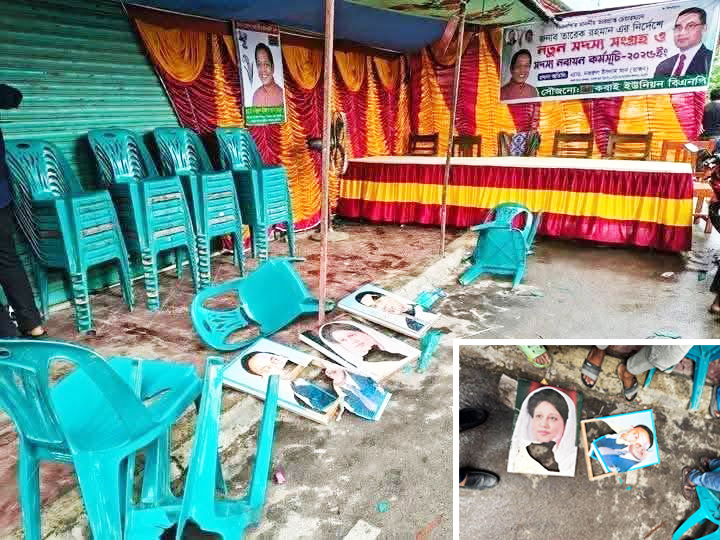 বরিশালের বাকেরগঞ্জে বিএনপির সদস্য সংগ্রহ ও নবায়ন কর্মসূচিতে হামলা চালিয়ে দলের প্রতিষ্ঠাতা শহীদ জিয়াউর রহমান, চেয়ারপারসন বেগম খালেদা জিয়া ও ভারপ্রাপ্ত চেয়ারম্যান তারেক রহমানের ছবি ভাঙচুর ও পদদলিত করা হয়েছে। হামলায় অন্তত ছয় থেকে সাতজন আহত হয়েছেন বলে দাবি করেছেন স্থানীয় বিএনপি নেতারা।