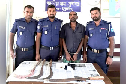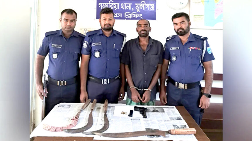মুন্সীগঞ্জের গজারিয়ায় মেঘনার কুখ্যাত জলদস্যু ‘শুটার মান্নান’ হত্যা মামলার অন্যতম পলাতক আসামি পলাশ গাজীকে (৩৯) গ্রেপ্তার করেছে পুলিশ। অভিযানের সময় তার কাছ থেকে একটি পিস্তল, পাঁচ রাউন্ড গুলি, একটি রামদা ও তিনটি ছেনি দা উদ্ধার করা হয়।