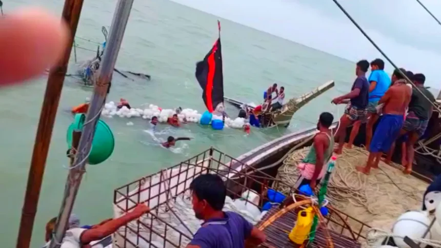 জেলেদের বরাত দিয়ে জানা যায়, শুক্রবার সকালে ট্রলারটি মাছ ধরতে বঙ্গোপসাগরে যায়। রোববার বিকেলে নিঝুমদ্বীপের দক্ষিণে হঠাৎ জলদস্যুরা তাদের ধাওয়া করে। জীবন ও সম্পদ রক্ষায় জেলেরা পালানোর চেষ্টা করলেও একপর্যায়ে জলদস্যুরা দ্রুতগামী নৌযান দিয়ে ধাক্কা দিলে ট্রলারটি উল্টে যায় এবং বেশিরভাগ অংশ সাগরে ডুবে যায়। পরে জলদস্যুরা চলে গেলে জেলেরা ট্রলারের ভাসমান অংশ আঁকড়ে ধরে রাত কাটায়।