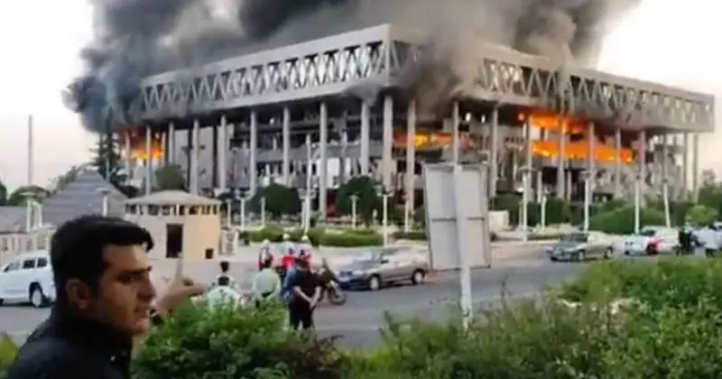ইরানের রাষ্ট্রীয় টেলিভিশন ভবনে হামলার দৃশ্য