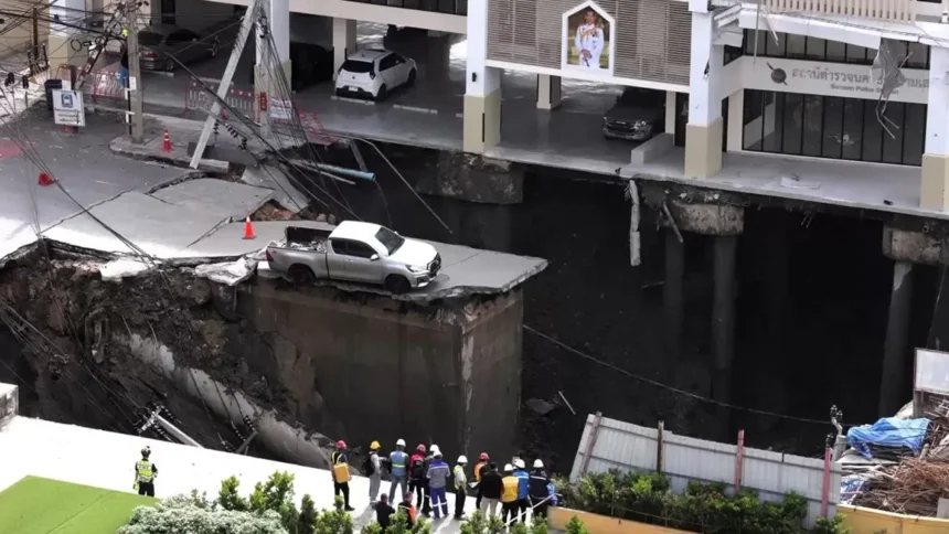 ইতোমধ্যে পাইপ থেকে বের হওয়া পানির প্রবল চাপে বিদ্যুতের একটি খুঁটি ভেঙে পড়ে এবং পুলিশের একটি ট্রাক সেই বিশাল খাদে উল্টে যায়। দুর্ঘটনাটি ঘটে থাইল্যান্ডের ভাজির জেলার কেন্দ্রীয় হাসপাতাল ও মেট্রো স্টেশনের সামনে। পরে স্থানীয় প্রশাসন পুরো এলাকায় যান চলাচল বন্ধ করে দেয়। (সূত্র: ব্যাংকক পোস্ট)