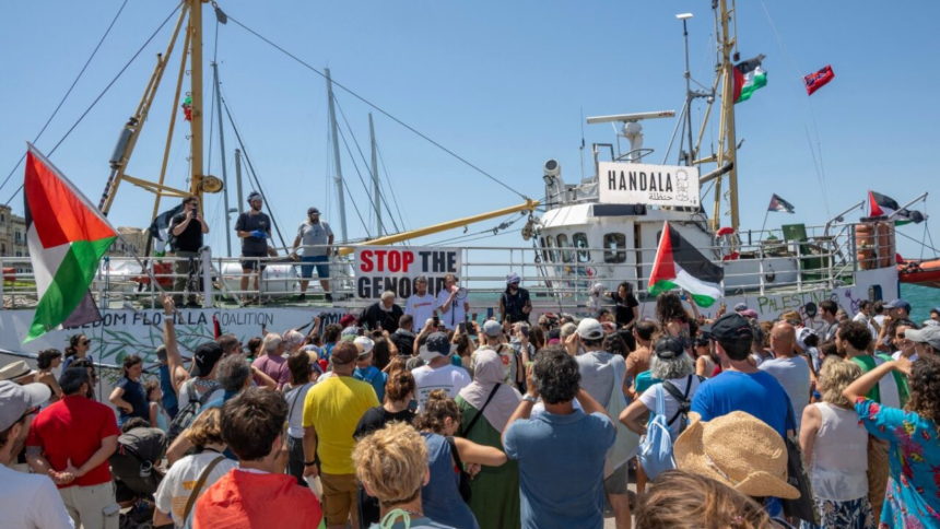 ফিলিস্তিনের প্রতি সংহতি জানাতে এবং গাজায় ত্রাণ পৌঁছে দিতে বিভিন্ন দেশের মানবাধিকারকর্মী, সাংবাদিক ও স্বেচ্ছাসেবীরা প্রায় ৪৫টি নৌযানে ৫০০-র বেশি যাত্রী নিয়ে সাগরপথে রওনা হন। কিন্তু গাজার উপকূলে পৌঁছানোর আগেই ইসরায়েলি বাহিনী নৌবহরে অভিযান চালিয়ে সবাইকে আটক করে।