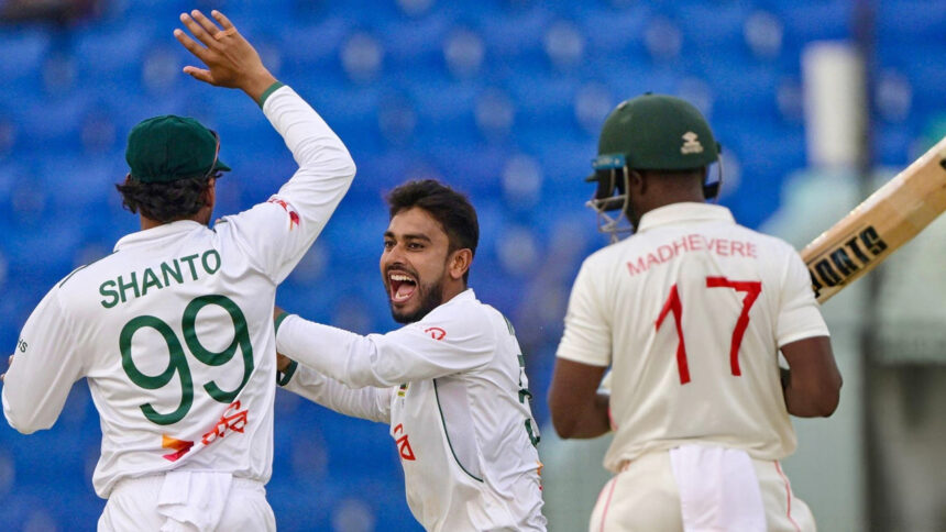 হার দিয়ে সিরিজ শুরুর পর চট্টগ্রাম টেস্টে দাপুটে পারফরম্যান্সে জিম্বাবুয়েকে হারিয়েছে বাংলাদেশ। যদিও দুই ম্যাচের সিরিজ শেষ হলো ১-১ সমতায়। মেহেদি হাসান মিরাজ ও তাইজুল ইসলামদের তোপের সামনে সফরকারীরা দাঁড়াতেই পারেনি। জিম্বাবুয়েকে ইনিংস ও ১০৬ রানের বড় ব্যবধানে হারানোর পথে রেকর্ড গড়েছেন মিরাজ। এ নিয়ে তিনি সাকিব আল হাসানের ১১ বছরের পুরোনো কীর্তিতে ভাগ বসালেন।